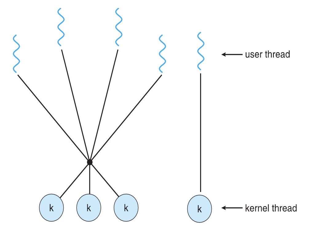- Similar to M:M, allows a user thread to be bound to kernel thread