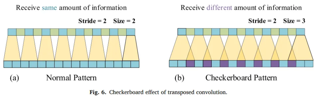 - Conv stride must be diveded into the size of the transposed conv kernel