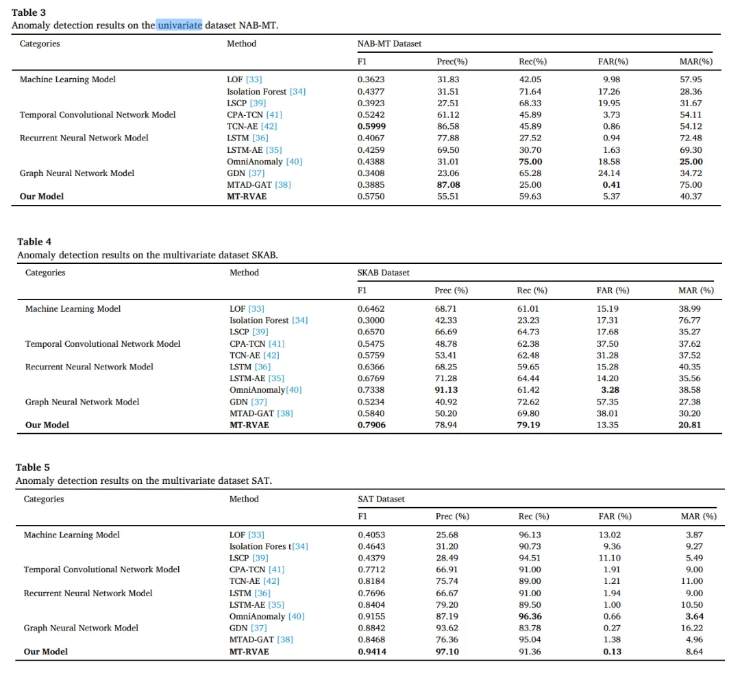 - MT-RVAE and GNN which focus on the multidimension is not as good as the TCN-AE on the one-dimensional data