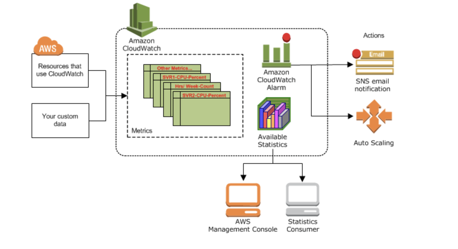 CloudWatch의 경고 기능은 AWS 상의 각종 리소스에 대해 지표(모니터링 조건)