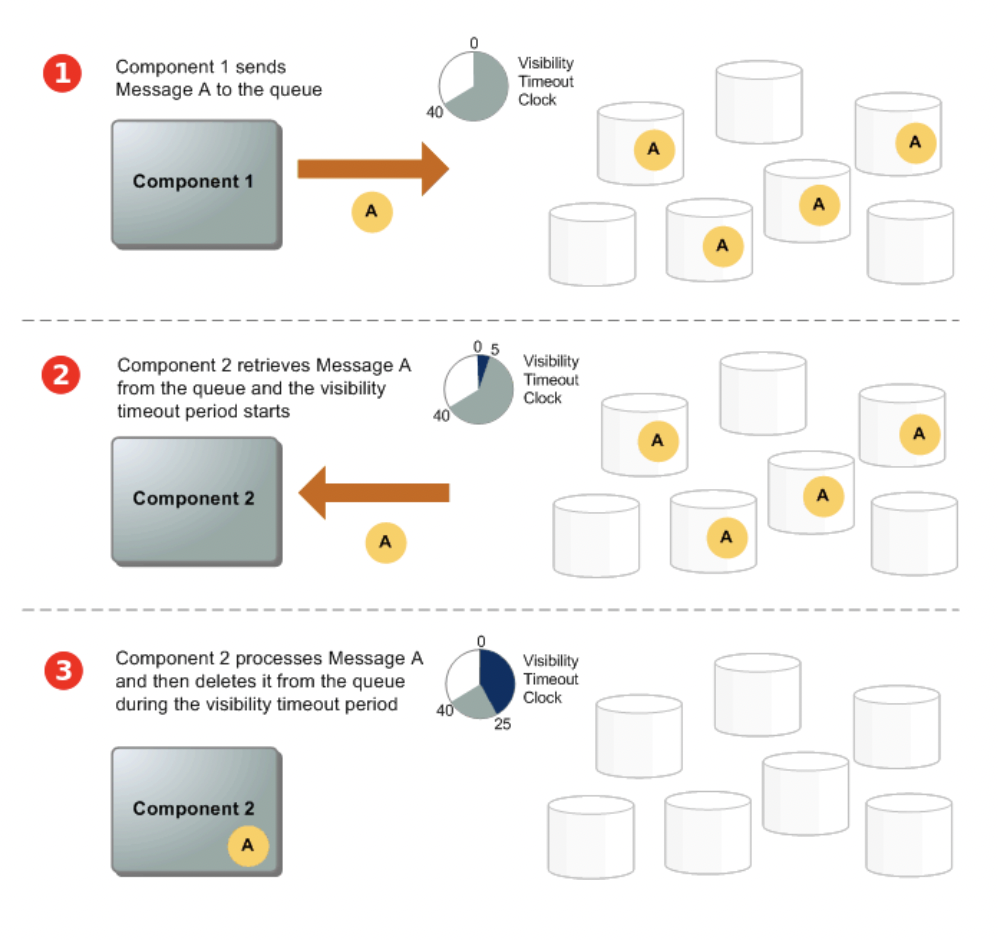 : 소비자가 메시지를 처리할 동안 해당 메시지를 대기열에 그대로 남아 있고, 제한 시간 초과가 지속되는 동안은 후속 수신 요청으로 반환되지 않음.