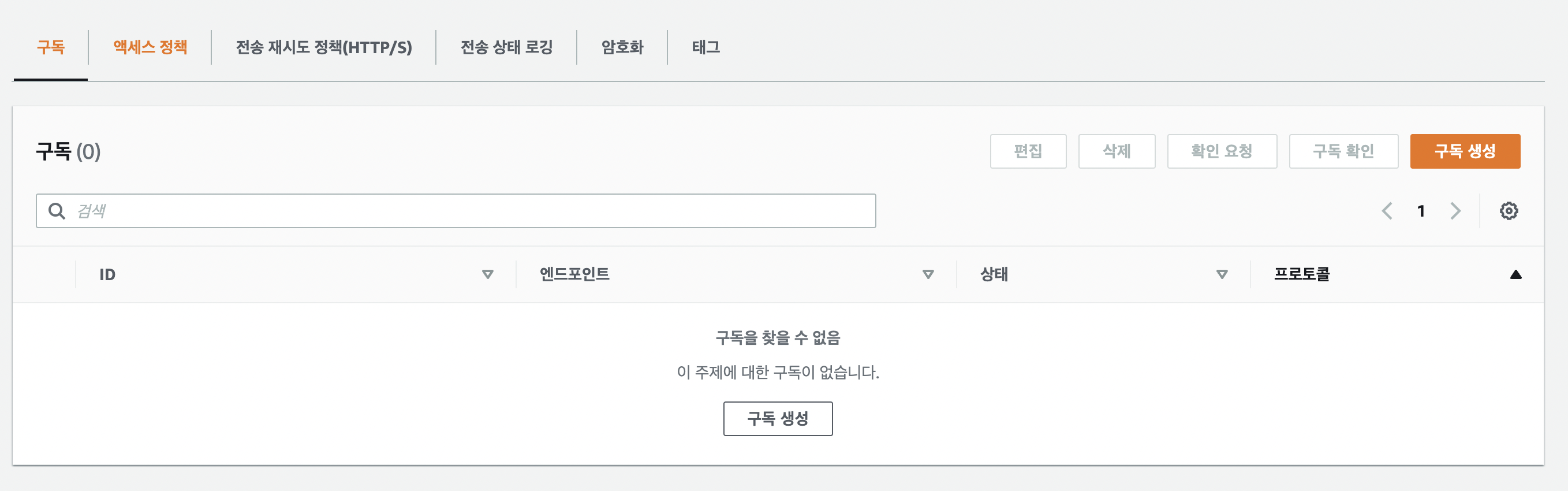 이전에 만든 주제 를 선택해 아래에 있는 구독 생성 버튼을 클릭해줍니다.