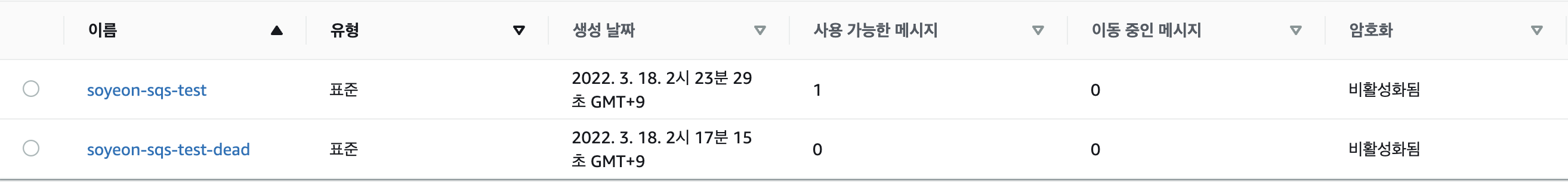 이름은 아까 dead SQS 에서 -dead 만 지워서 만들어줍니다.