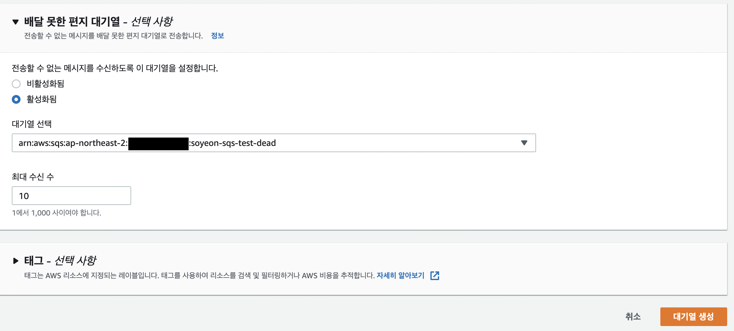 Dead SQS 를 만들어줬으니 이젠 실제 사용할 SQS 를 만들어주겠습니다.