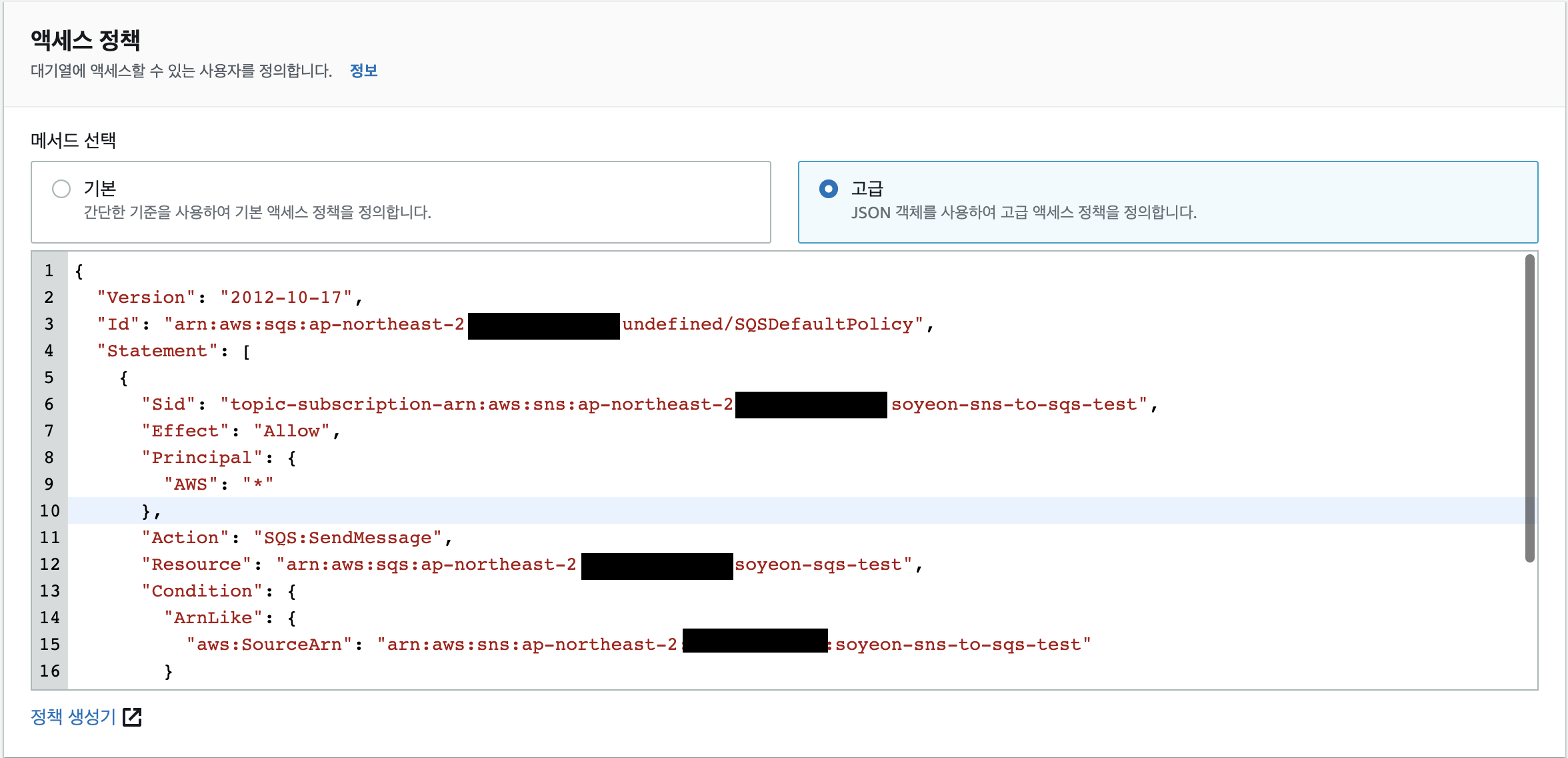 그다음 액세스 정책을 설정해줘야 하는데 sns 로 부터 통신할 수 있도록 규칙을 지정해줍니다.