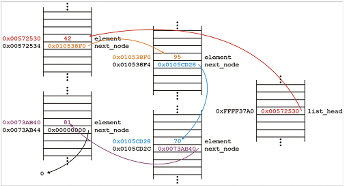 - 하나의 노드에 다음 데이터의 주소와 데이터를 같이 저장