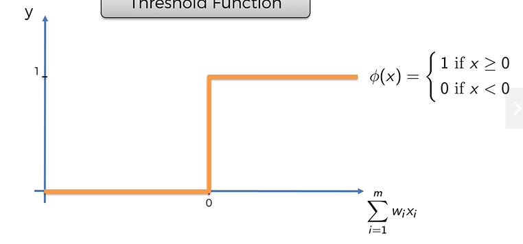 Threshold Function은 값이 0보다 작으면 0을 전달하고, 0보다 크거나 같으면 1을 전달한다.