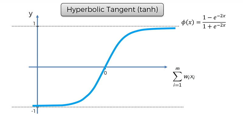 - 시그모이드 함수와 아주 비슷하게 생겼다 ! 하지만 값이 0 아래로 내려간다는 차이가 있다.