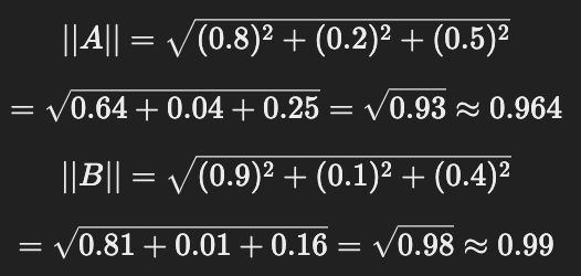A⋅B=(0.8×0.9)+(0.2×0.1)+(0.5×0.4)