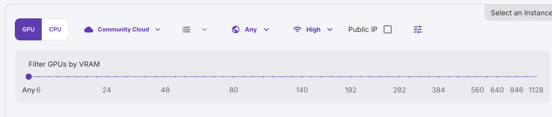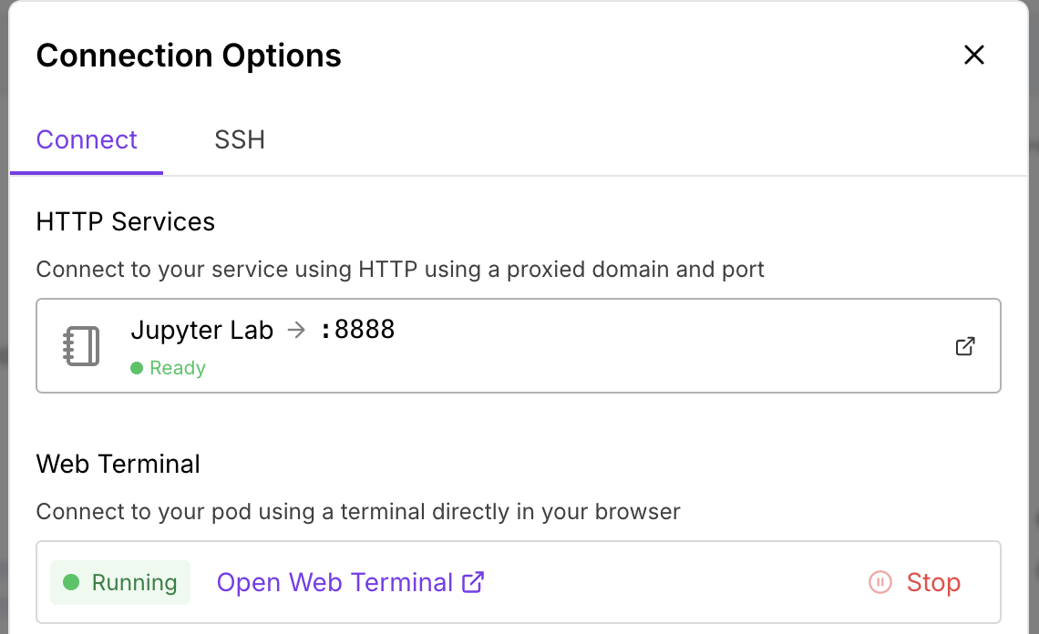 다양한 GPU 종류 제공 (A100, H100, RTX 4090, 3090, T4 등)