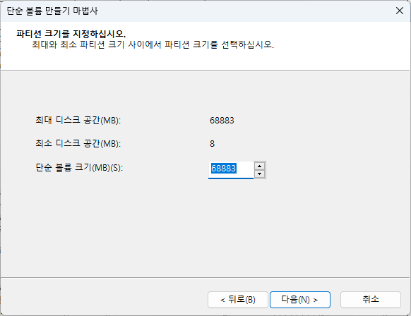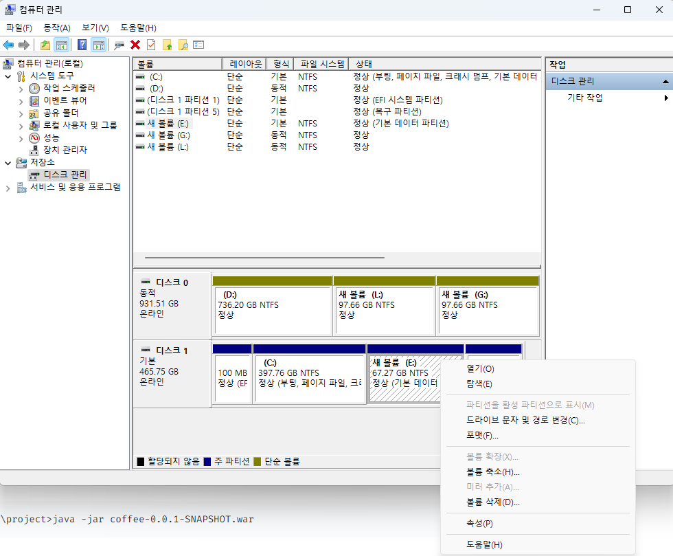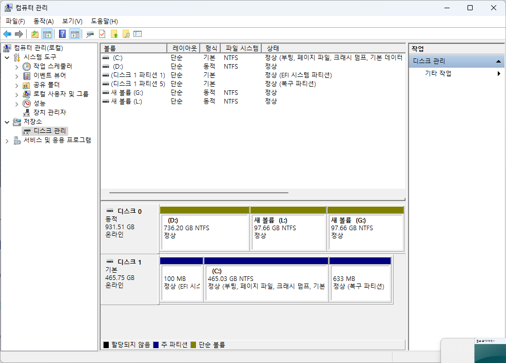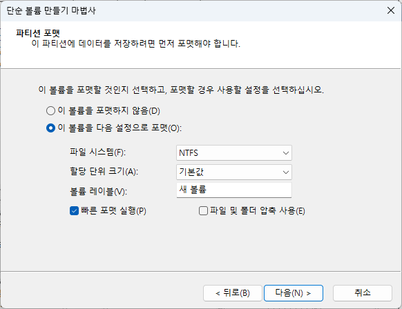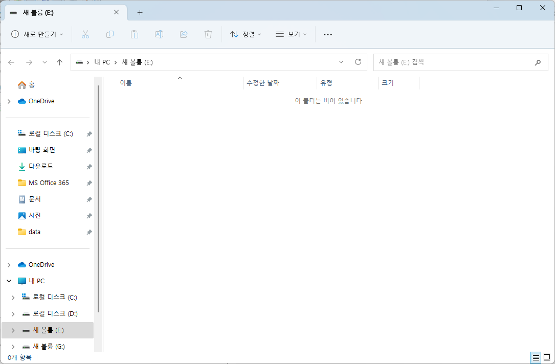 새 볼륨(E:) 드라이브 생성