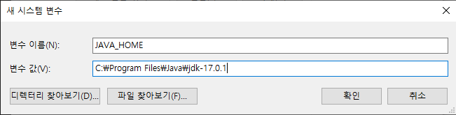 - 변수 값 : C:\Program Files\Java\jdk-(설치한 버전)