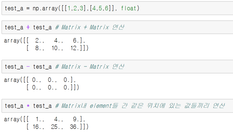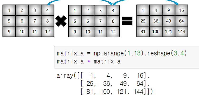 Element wise operation : Array간 shape가 같을 때 일어나는 연산
