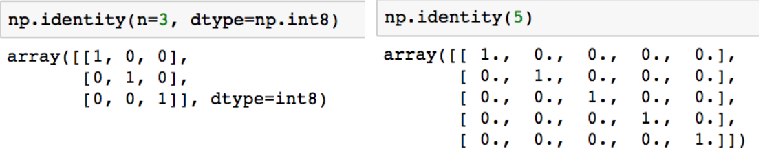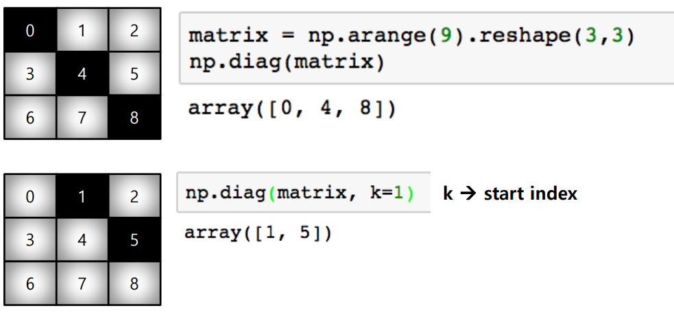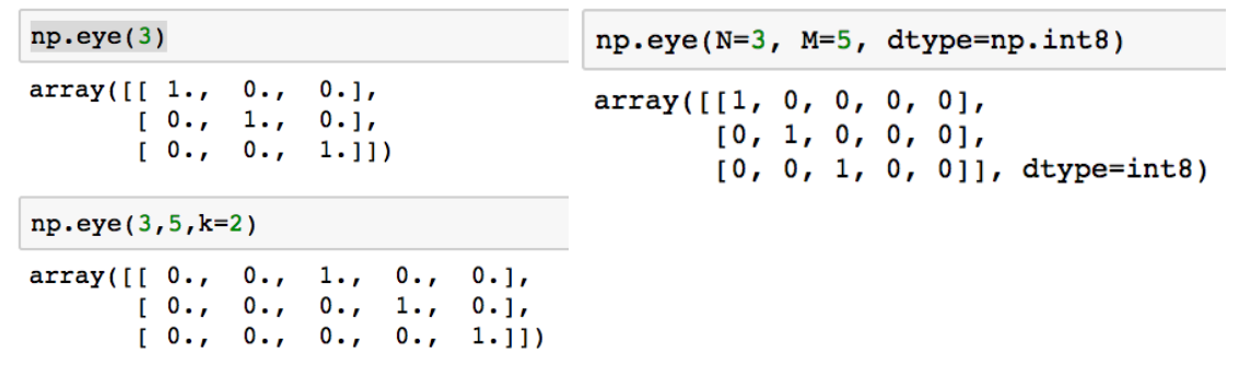 eye : 대각선이 1인 행렬, k값의 시작 index 변경 가능
