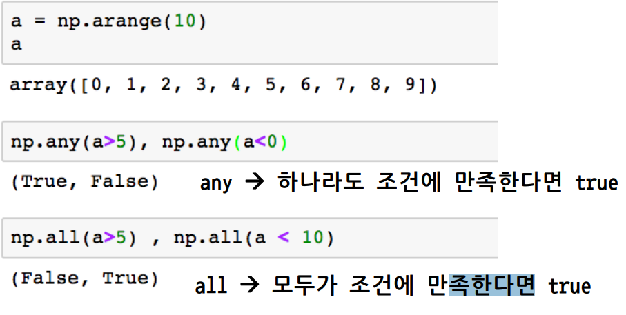 All, any : array의 전부또는 일부가 조건 만족 여부 반환