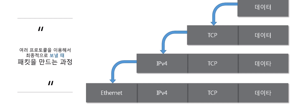 3계층의 PDU : 패킷 (ex : IPv4 + 데이터)