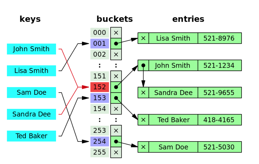 각각의 key값에 hash function를 적용해 배열의 고유한 index를 생성해 bucket이라 불리는 array에 값을 저장
