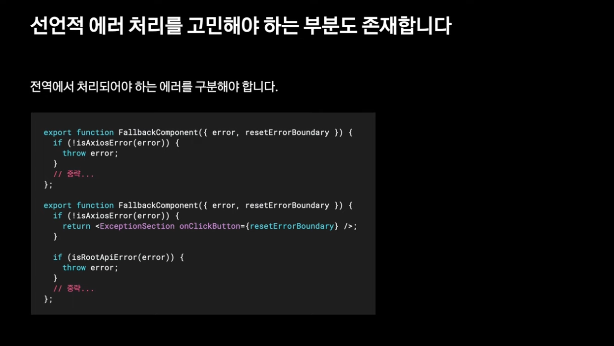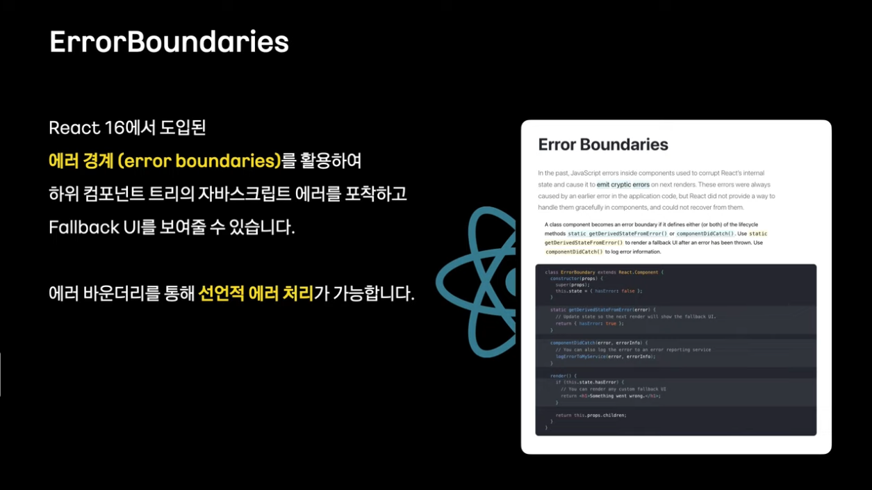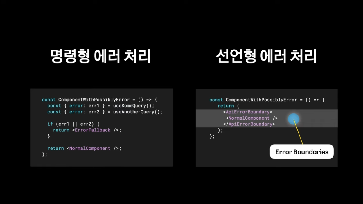 에러 바운더리를 통해 선언적 에러 처리가 가능함