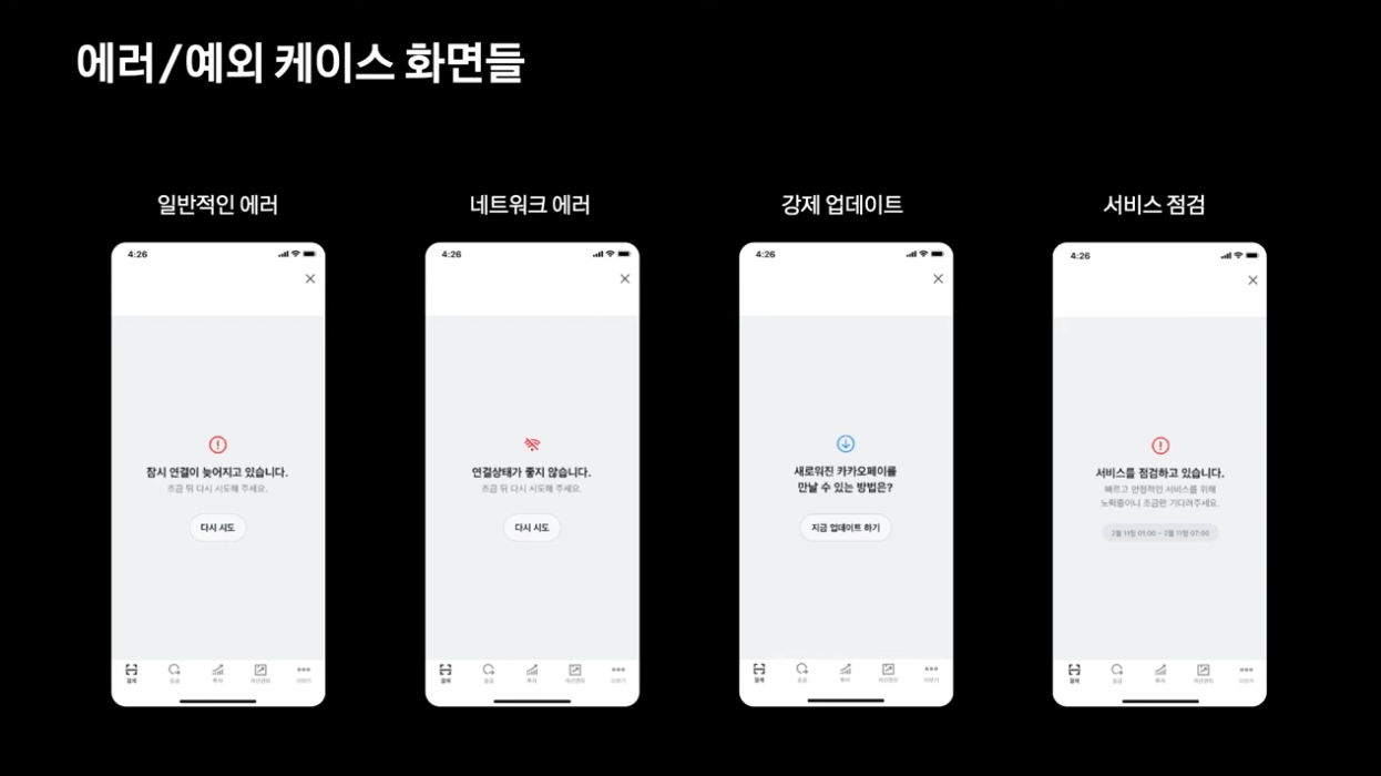 반환되는 HTTP 코드로 네트워크 에러, 타임아웃 에러, 계정이상 에러 체크로 구분
