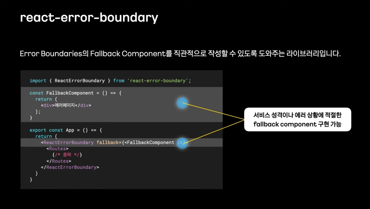 에러 바운더리의 fallback component를 직관적으로 작성할 수 있도록 도와주는 라이브러리