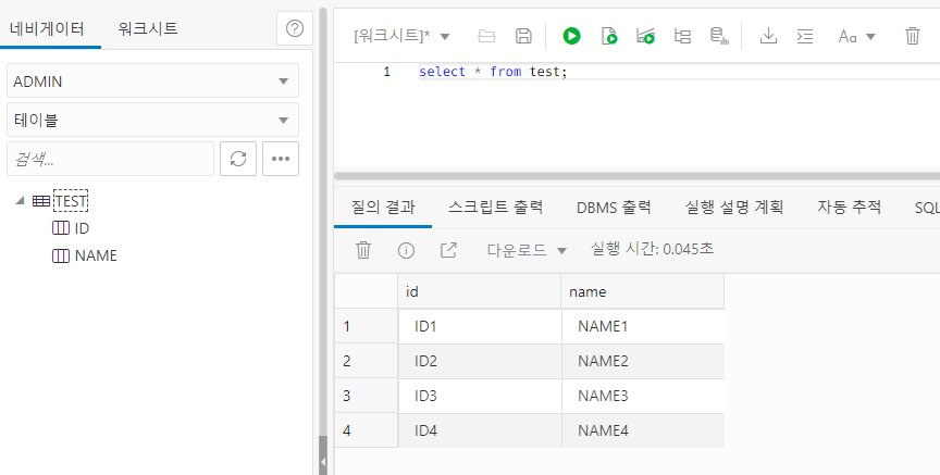 INSERT INTO TEST (ID ,NAME) VALUES( 'ID4', 'NAME4' )