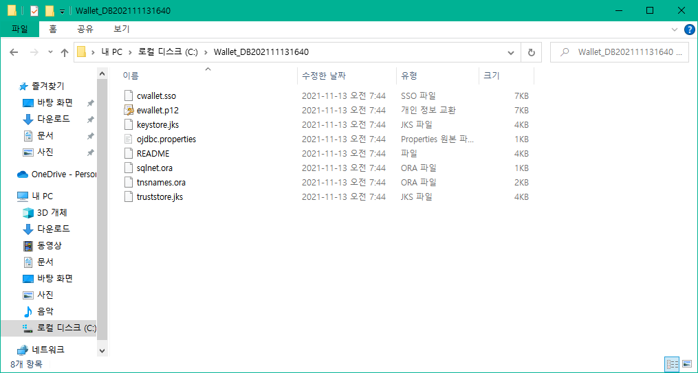 # TNS_ADMIN 뒤에 전자지갑 압축을 푼 경로를 넣어준다.