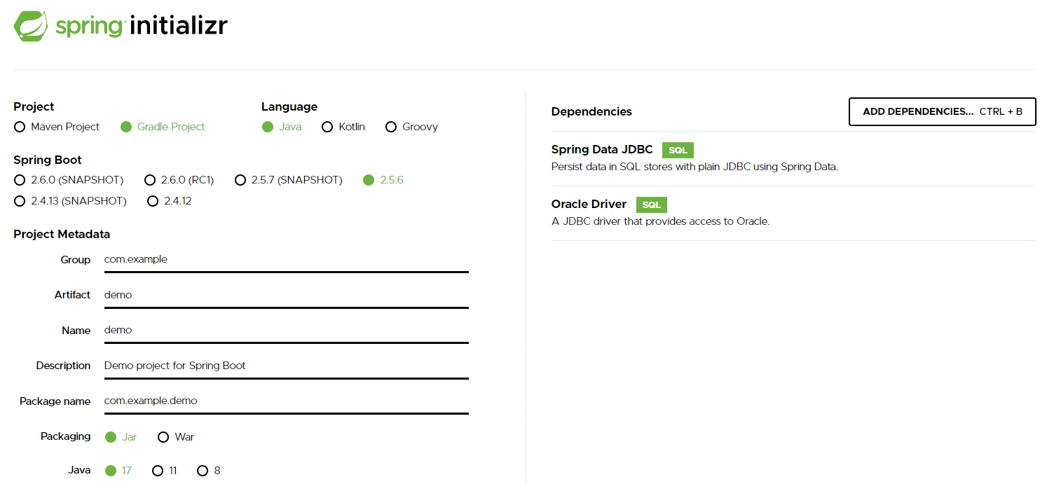 runtimeOnly 'com.oracle.database.jdbc:ojdbc8'