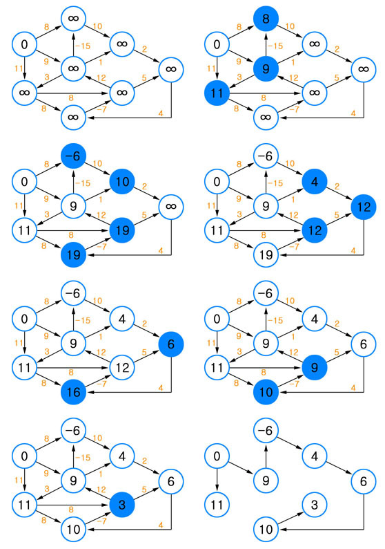 그런데 이런 과정을 하는데 는 간선의 가중치가 음의 값을 가져도 상관 없음을 알고리즘 순서를 이해 했다면 알수있다.