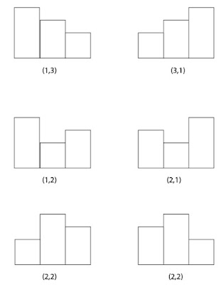 가장 짧은 막대를 맨 오른쪽에 붙였을때 (2,2)가 되는 경우는 (2,1) 인경우가 있다.