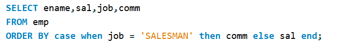 ORDER BY case when job = 'SALESMAN' then comm else sal end;