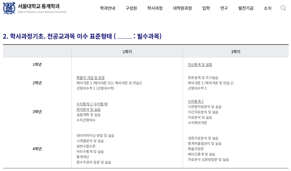 통계학과 전공 로드맵 참고(서울대학교)