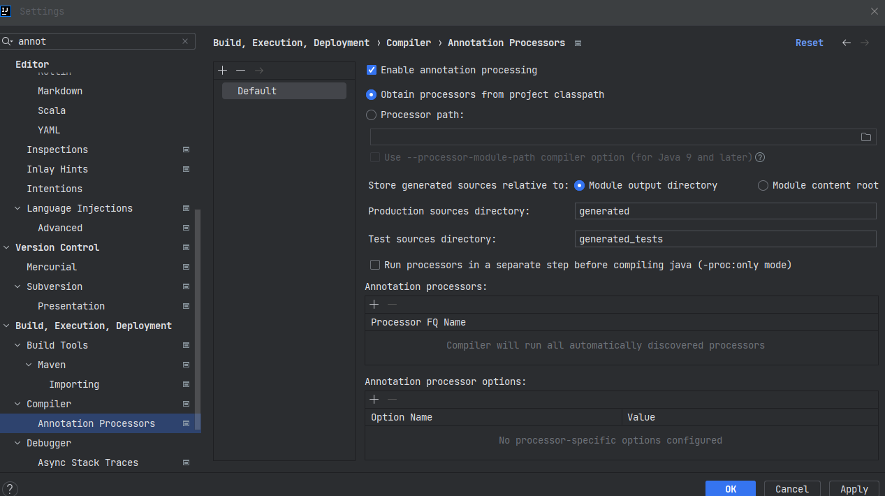 Build, Execution, Deployment > complier에서 enable annotation processing 클릭