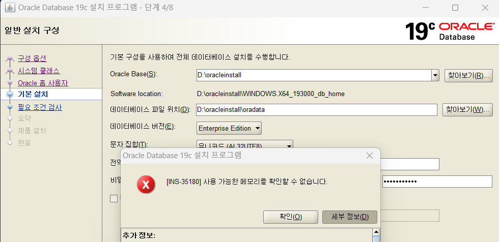 근데 이와중에 사용가능한 메모리를 확인할수 없습니다 는 에러 표시