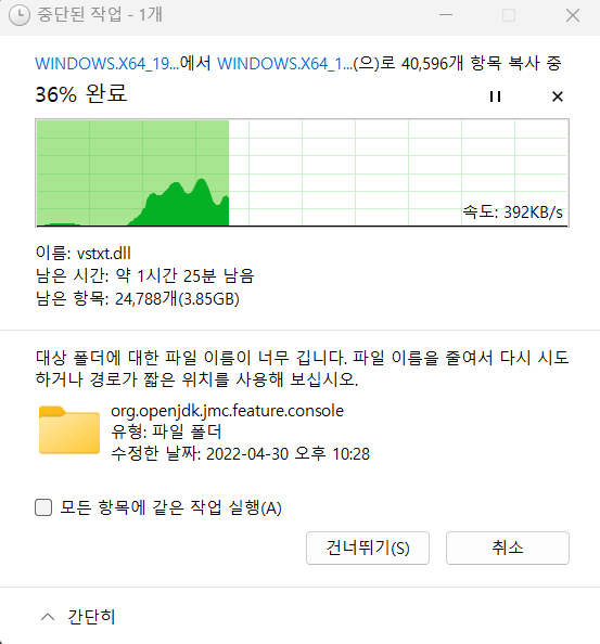 데스크탑 이름을 영어로 바꾸고 관리자 권한으로 실행했더니 드디어...
