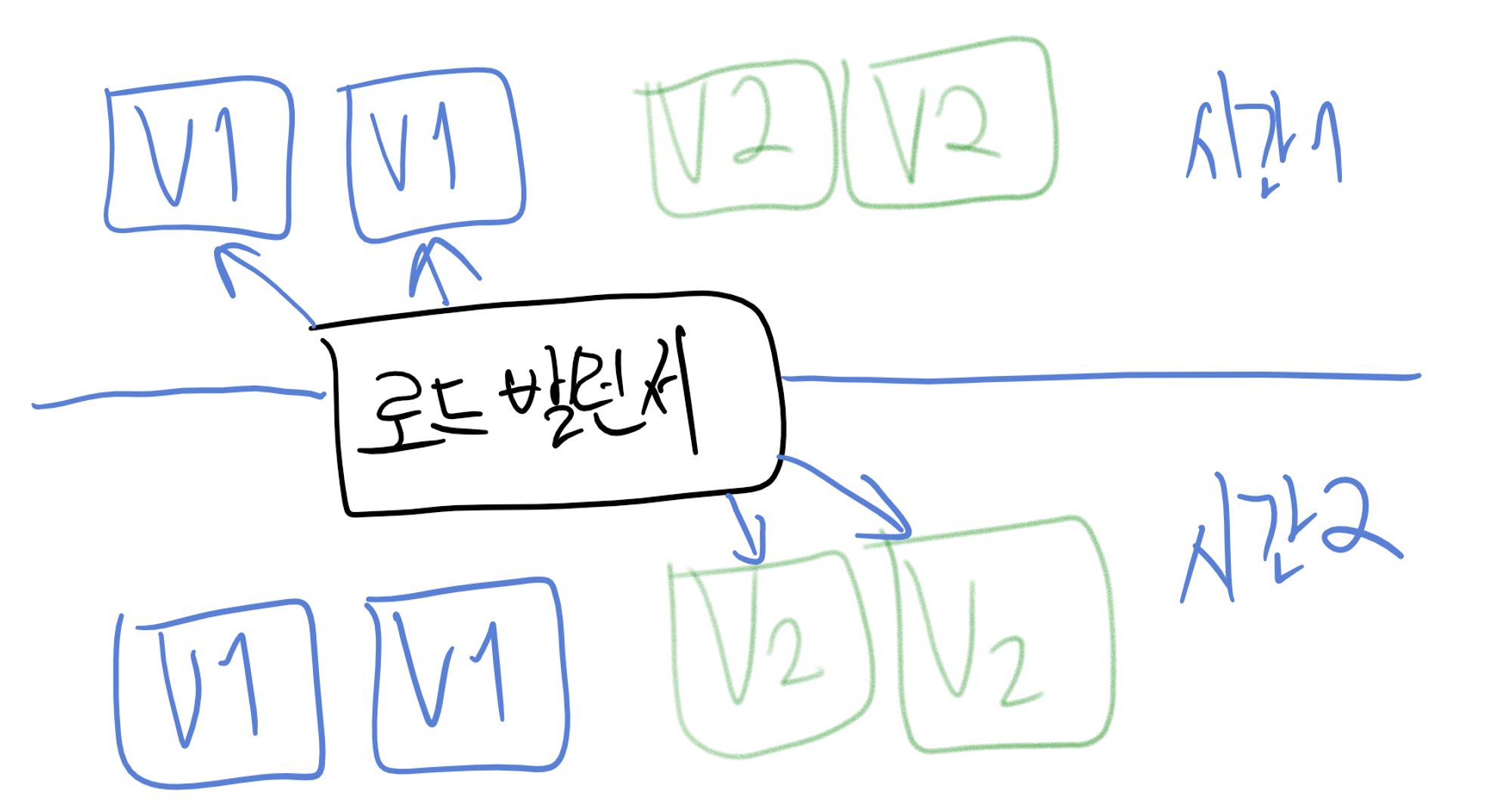 <현재 운영 중인 서비스 버전 : 블루 / 새롭게 배포할 버전 : 그린>