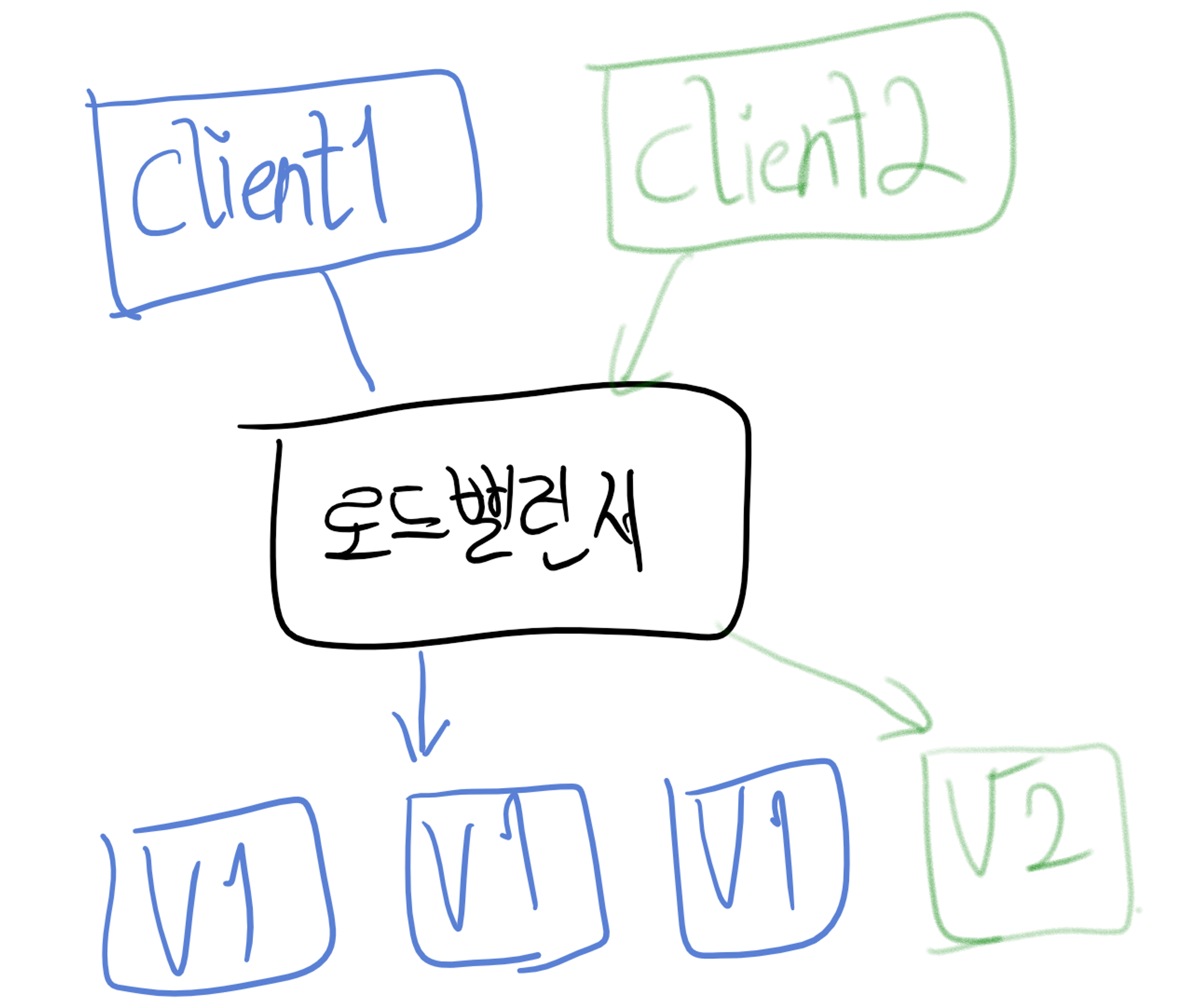 -> 유저군 / 가중치에 따라 일부만 그린 버전으로 트래픽을 보냄. ( A/B테스트 )