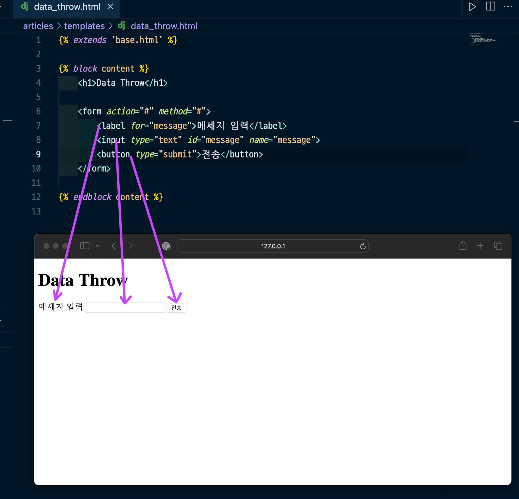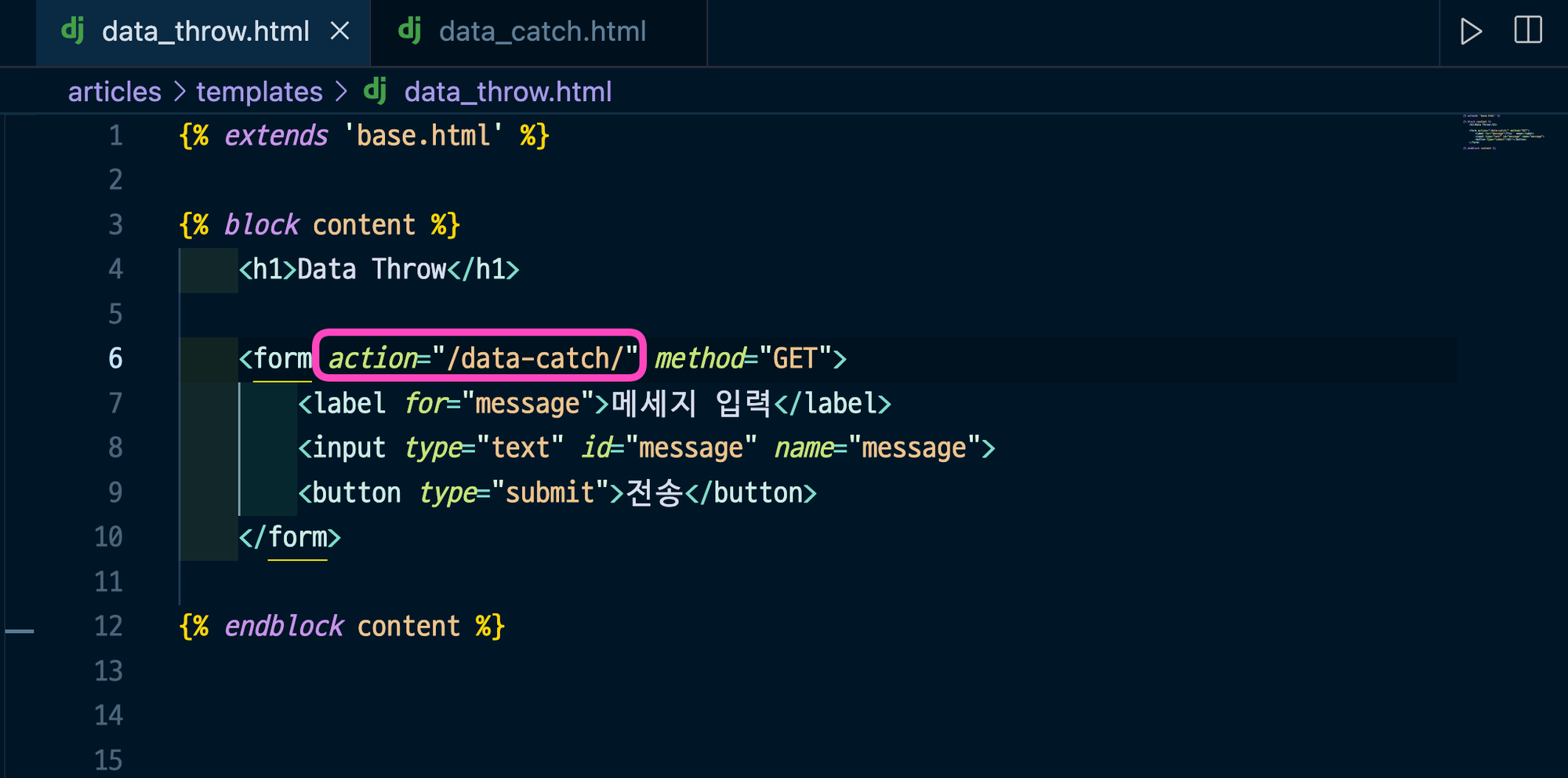 오늘 배울것은 데이터를 어디로(action) 어떤 방식(method)를 이용해서 보낼지 결정하는 법이다.