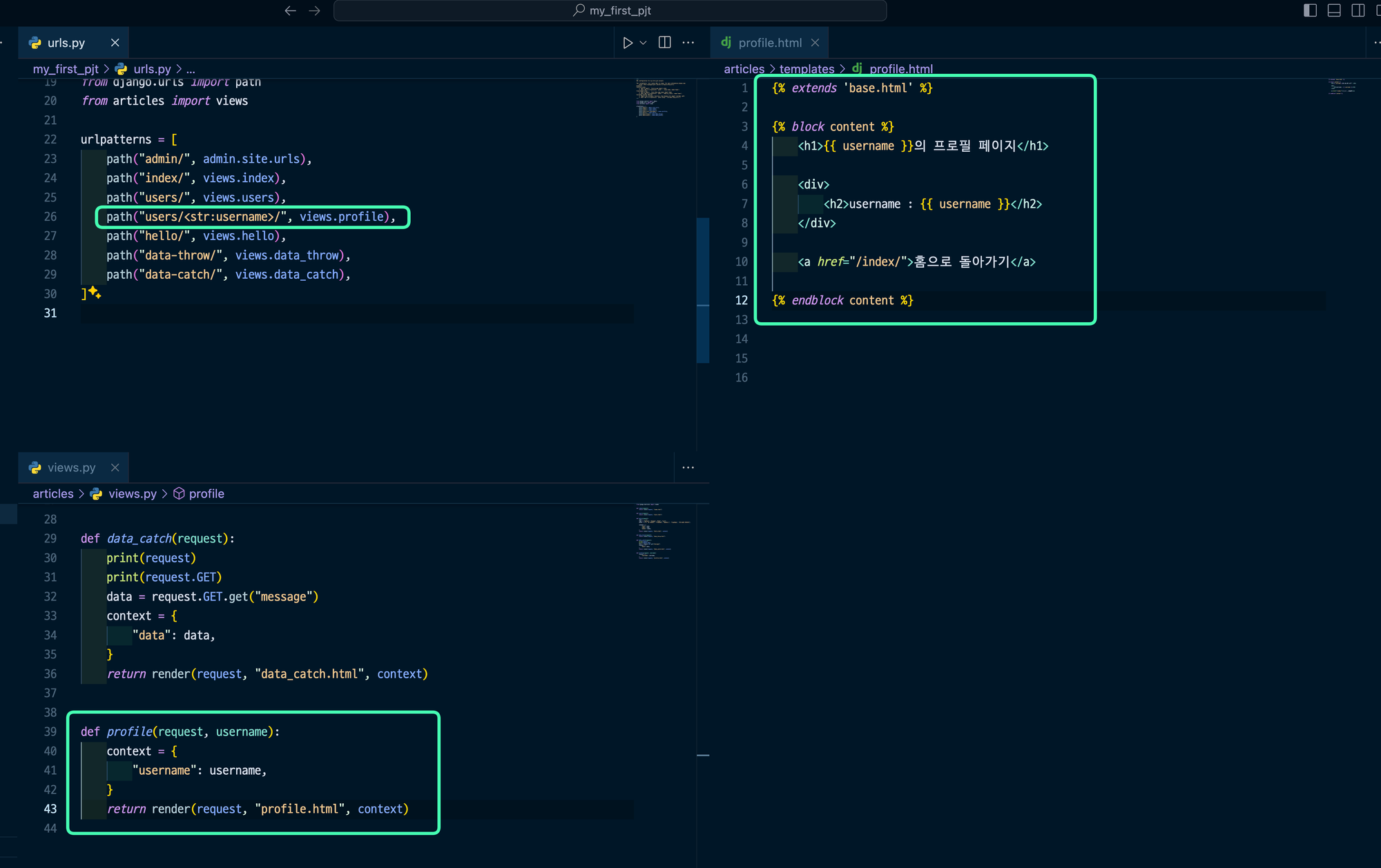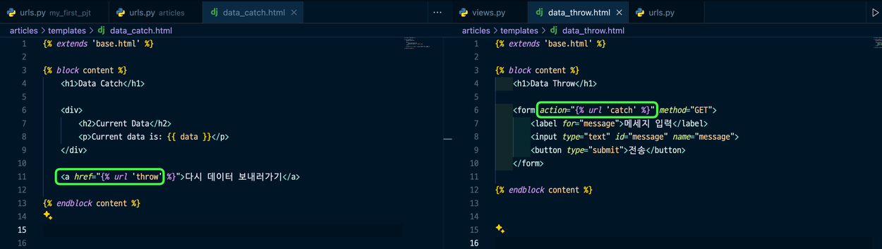 맞으면 url에서 "articles/" 또는 "users/"를 잘라내, 해당되는 urls에 넣어줌.