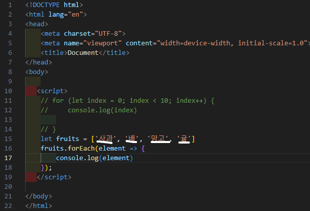 element에 사과 배 망고 귤이 하나씩 들어감.
