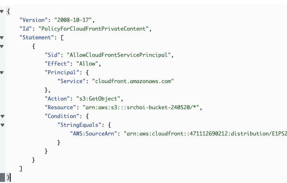 아래에 AWS:SourceArn 에는 배포에 들어가 Arn을 복사해 붙여넣어준다.