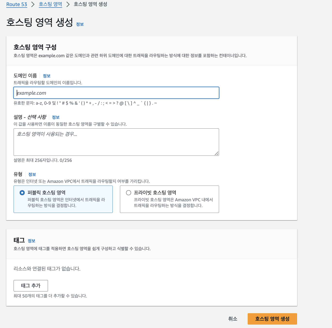 먼저 호스팅 영역을 생성해준다.