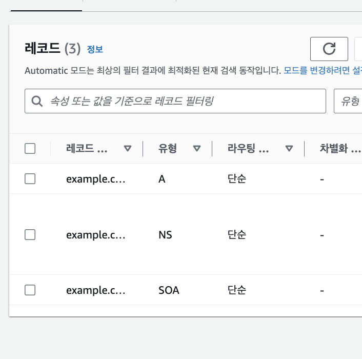 아래에 Route53의 대표적인 레코드 유형이다.