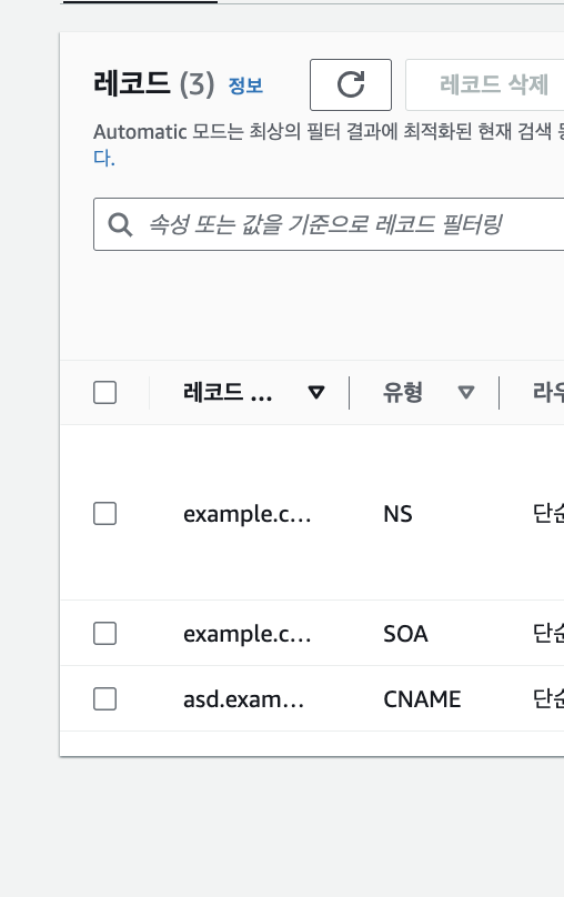 그리고 CNAME 레코드도 생성해주었다.(별칭 레코드, 현재 레코드의 이름에 대한 DNS 쿼리를 다른 도메인 또는 하위 도메인으로 매핑)