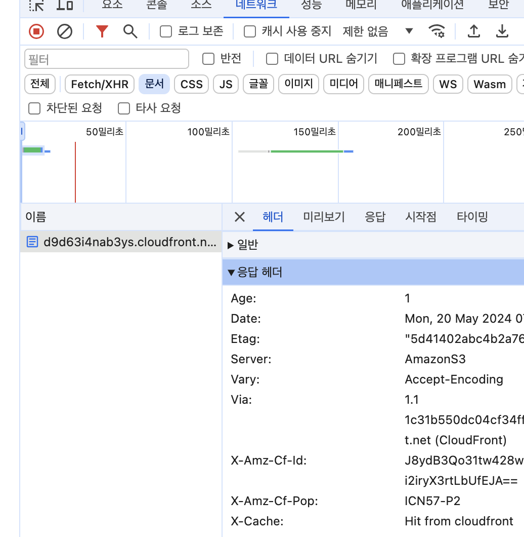 X-Cache 에 Hit from cloudfront와 Miss from cloudfront 가 있다.