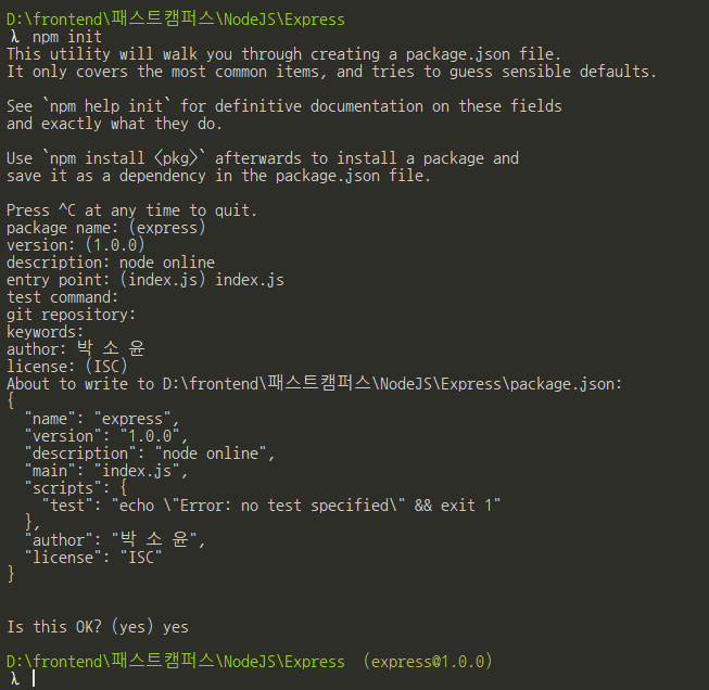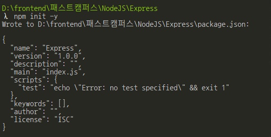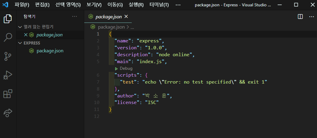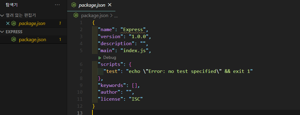 package.json>"scripts": { "test": "echo \"Error: no test specified\" && exit 1" },//변경