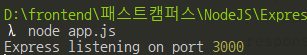 - js 파일에 내용을 넣어 저장 > cmder에서 해당 파일 node 실행 > 인터넷 localhost:3000