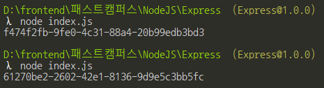 cmder해당파일 서버 닫고 (^C명령어 ) node 실행