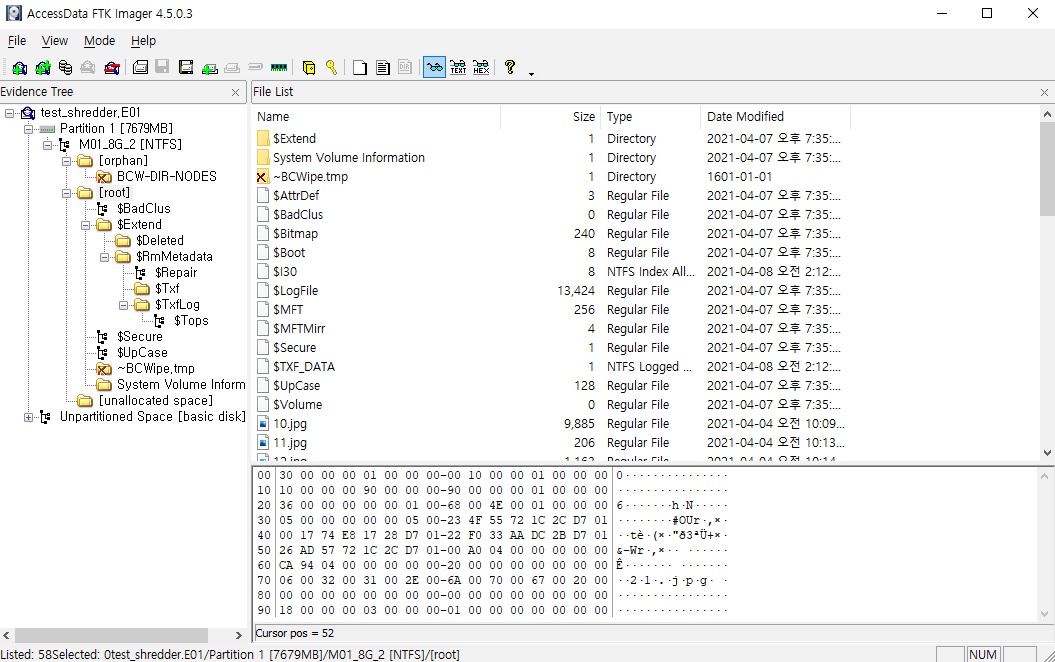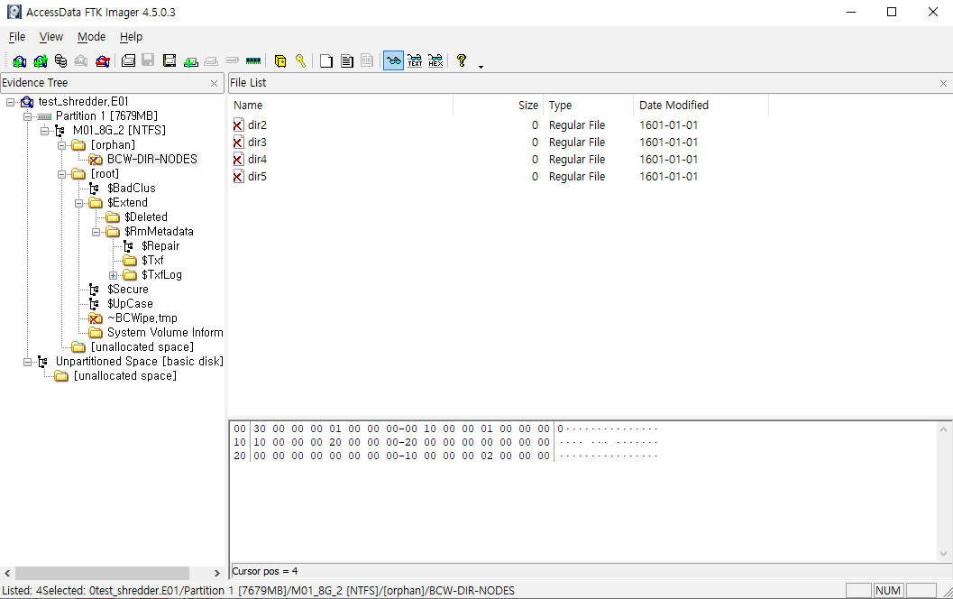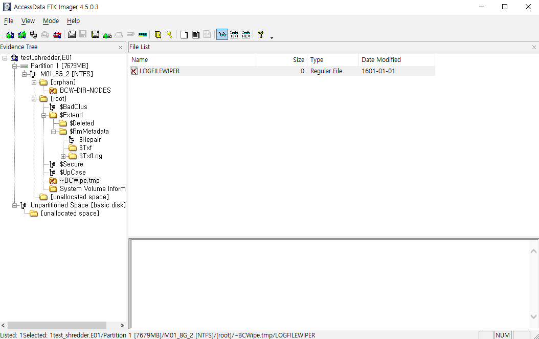 이미지 파일을 분석하기 위해 FTK Imager를 사용하여 이미지 파일 “test_shredder.E01”을 열어주었다.