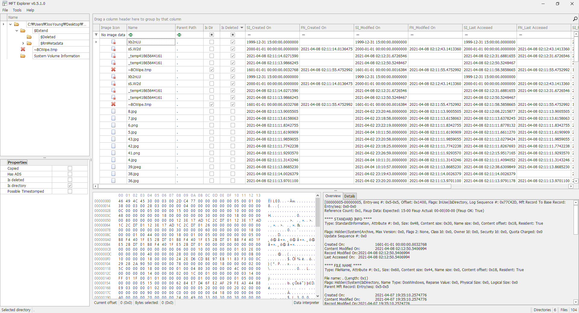 사진과 같이 삭제된 파일들을 FTK Imager를 통해 볼 수 있다. 이제 이 파일들이 삭제된 시간을 알아내고자 하는데 이는 $LogFile과 $MFT 파일 분석함으로써 알 수 있었다.
