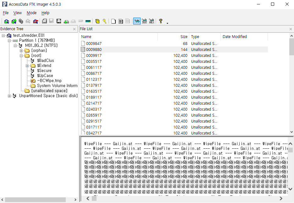 ▲ [unallocated space]에서 확인한 와이핑 흔적
